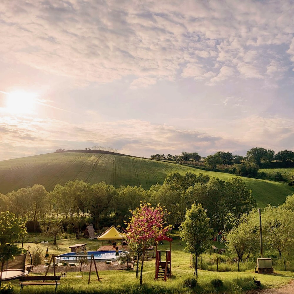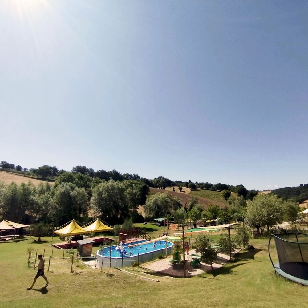 Camping Suasa ligt op een idyllische locatie in de Italiaanse regio Le Marche. De oude boerderij met groot stuk grond is sinds 2019 in het bezit van Myron en Dora, die er samen een kleinschalig vakantieparadijs van maken. Ver weg van het dagelijkse leven heb je echt even tijd voor elkaar én voor jezelf. Hier vind je alle ruimte om samen te genieten en je batterij op te laden.