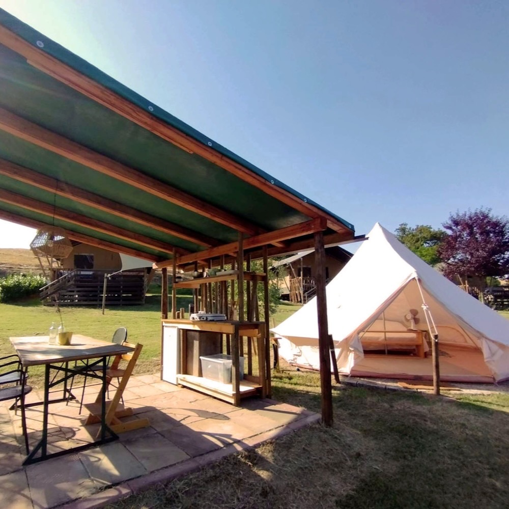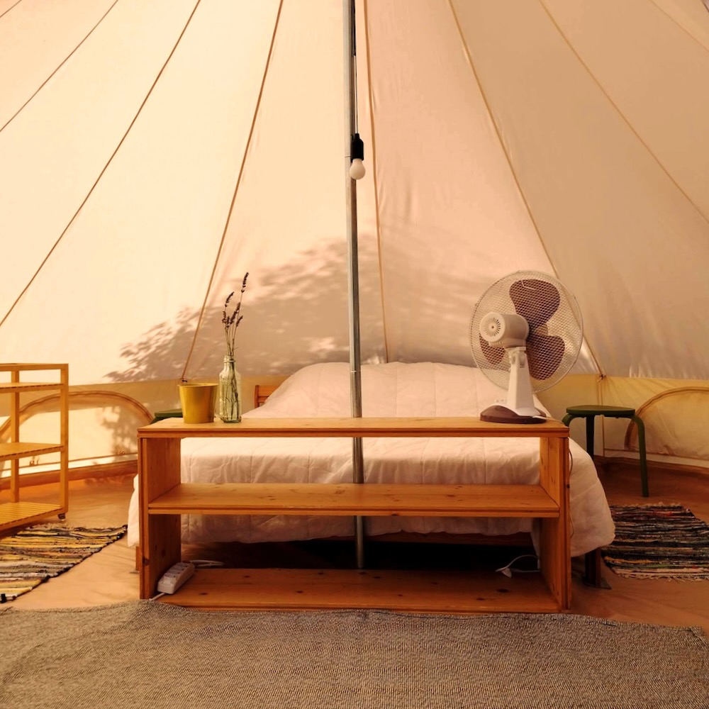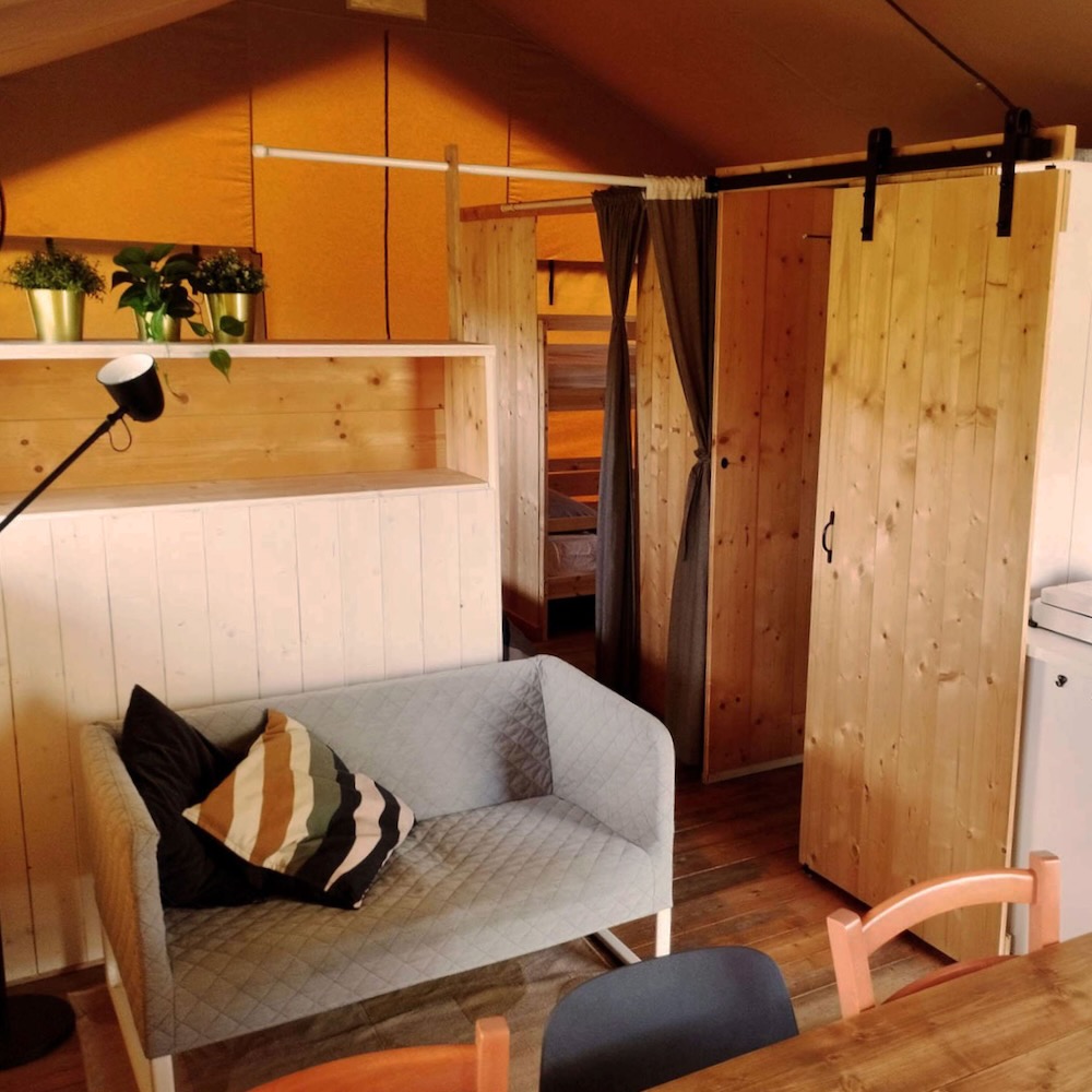 Camping Suasa heeft 17 plekken. Er zijn zeven plekken voor kampeerders die komen kamperen met een eigen tent of vouwwagen. Voor de glamping liefhebber zijn er zes safaritenten met eigen keuken en sanitair. De drie Bell tenten bieden het comfort van een vooropgezette tent met echte bedden. En voor campers van max 6 meter hebben ze ook een mooie plek. Wil je met een caravan komen, neem dan even contact op met Dora of Myron, dan kijken ze of het past.